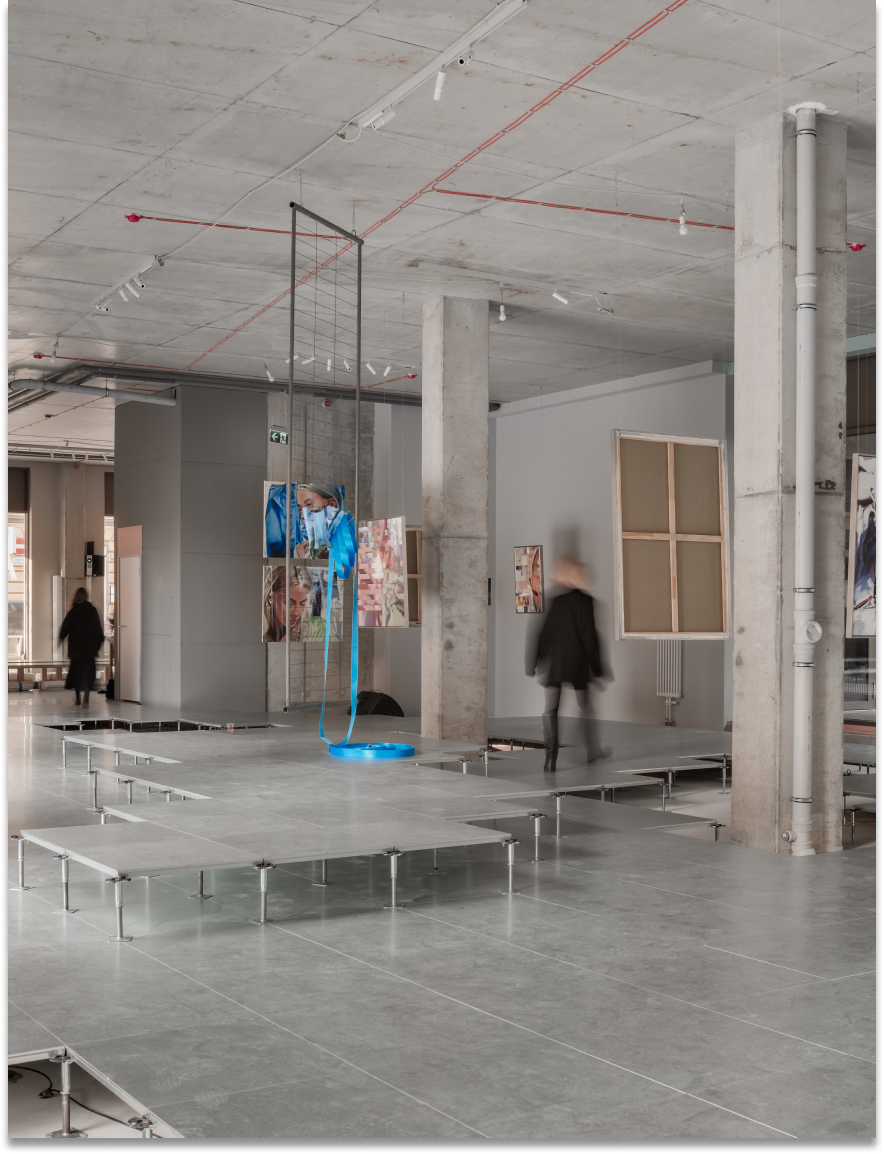 The art exhibition of Flera Birmane is raw and deeply emotional - an eruption of pain, a scream for freedom. It explores the act of breaking boundaries, shedding the sacred, and returning to the secular. It is not a conclusion, but a transitional space - uncontrolled, unanchored, suspended between what was and what might be. The scenography follows suit: untethered from matter, undefined, and slightly dangerous - deliberately chaotic.