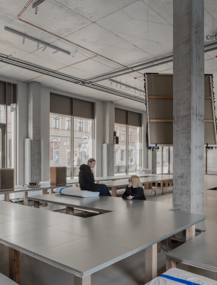 Jūrmala's traditional buildings are wooden cottages with intricate details. We imagined childhood memories of drinking tea at grandma’s place with the sun streaming through the net curtains. A powerful image we interpreted throughout the space. The curtains in the kitchen are a direct reference. On sunny days, the light bounces around the room just like it did in grandma’s kitchen when we were kids.