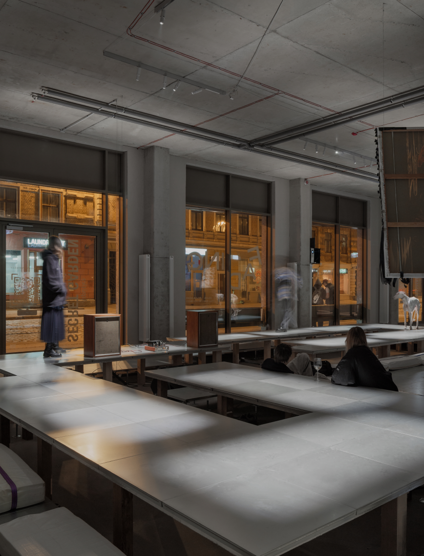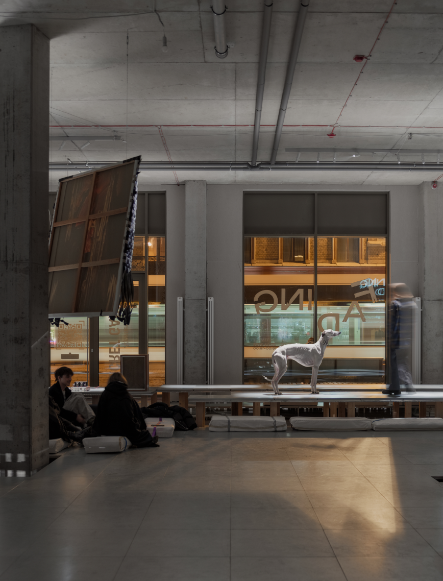 With carefully curated lighting, the exhibition transforms from day to night. In daylight, the space is open, curious, and observant; by nightfall, it becomes more intimate - ripe for reflection and quiet connection. The lighting concept was embedded from the start, forging a powerful contrast between artwork and environment, amplifying the tension of the in-between.