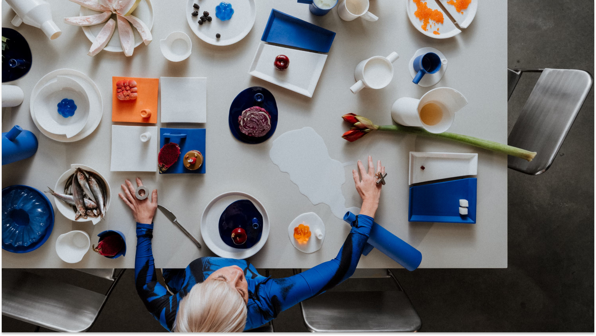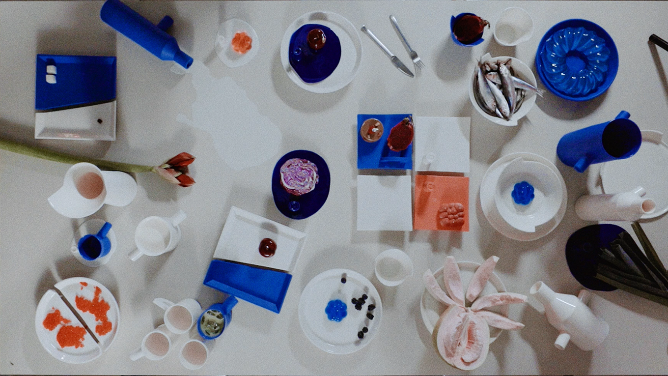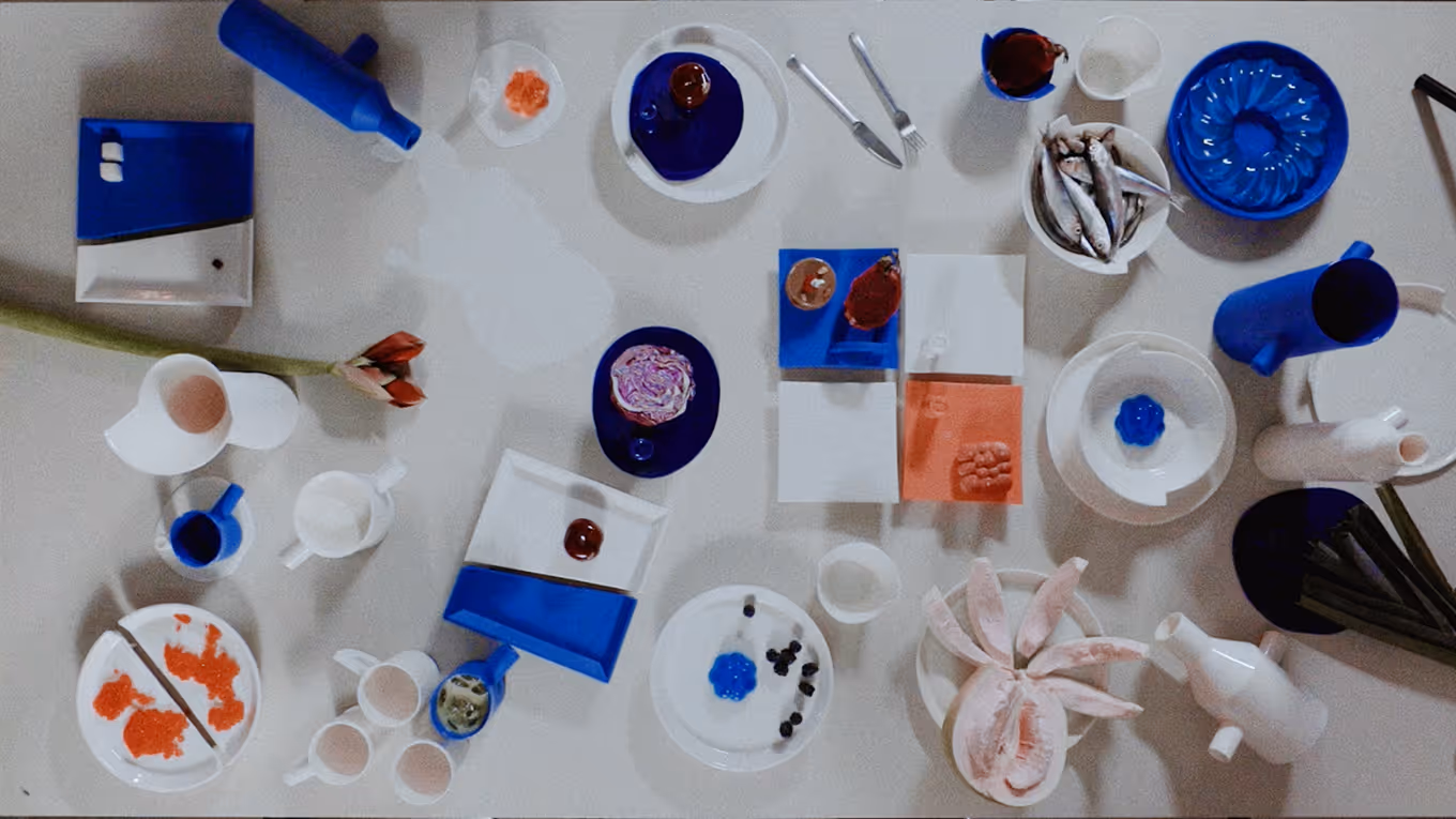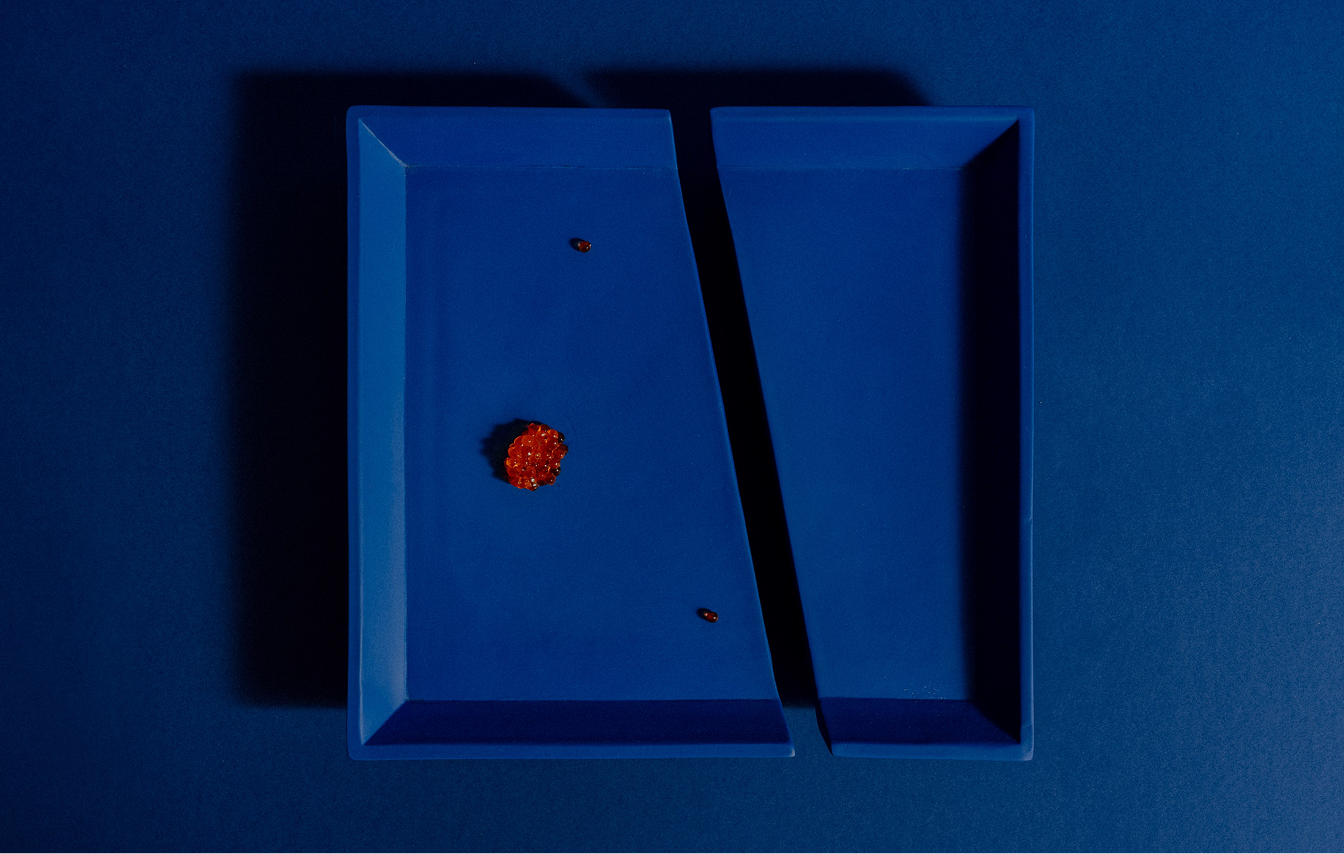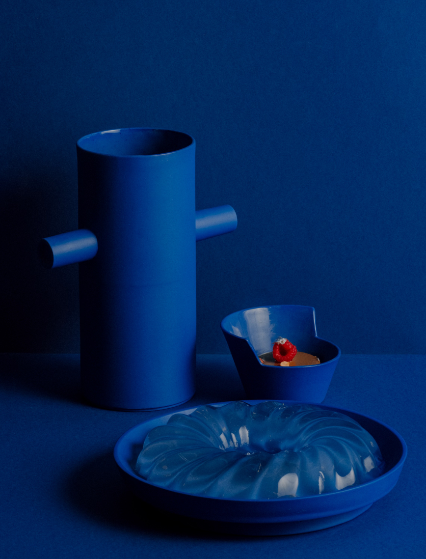 Architect Zane Tetere-Sulce plays with form and materiality, shaping the collection over years of hands-on trial and error to transform the naturally fluid porcelain into clean, precise angles. The deeply saturated color is achieved by tinting the porcelain mass itself rather than applying traditional surface glaze techniques. Many pieces are partially glazed, creating a subtle tension between rawness and refinement, revealing the naturally soft texture of this graceful material. The result is a surprisingly laconic yet bold design pieces, defined by architectural thinking.