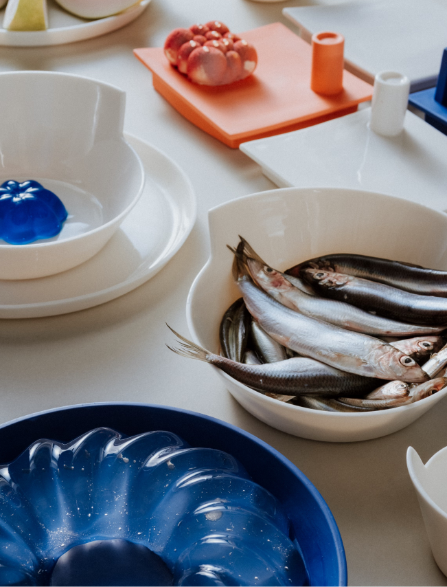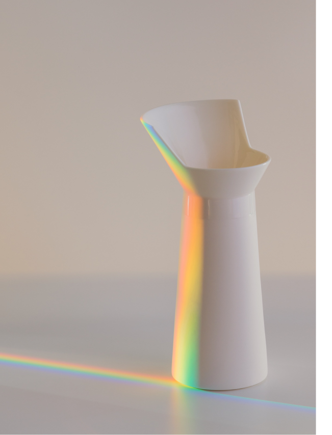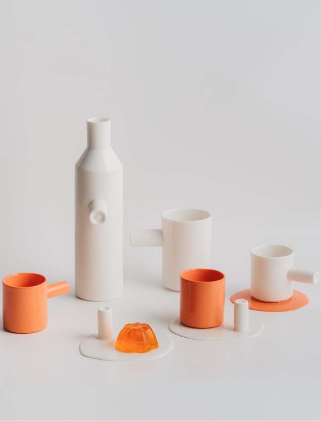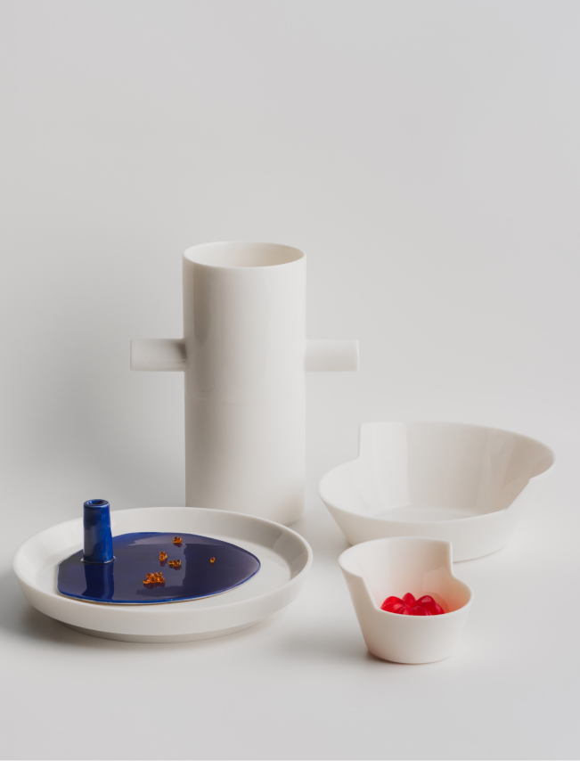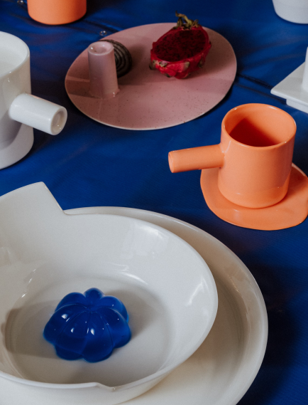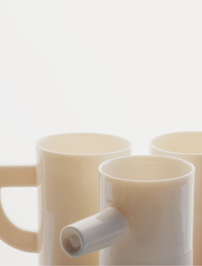 No material is wasted in the making of the collection. Leftover porcelain mass is poured freely, forming the Spill Plates - each unique and marked by its making.Form is not decorative but revealed through structure and proportion. Each object begins as an architectural idea, allowing geometry to become the main language of expression. A constant dialogue between control and chance, intention and accident shapes the outcome.