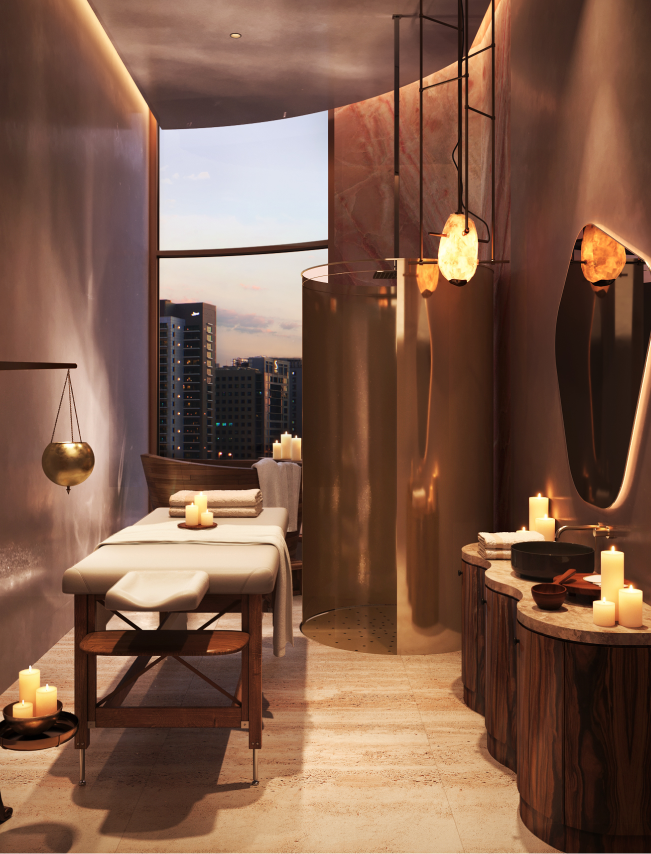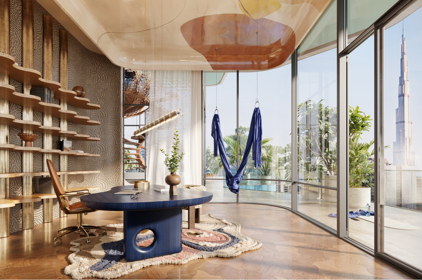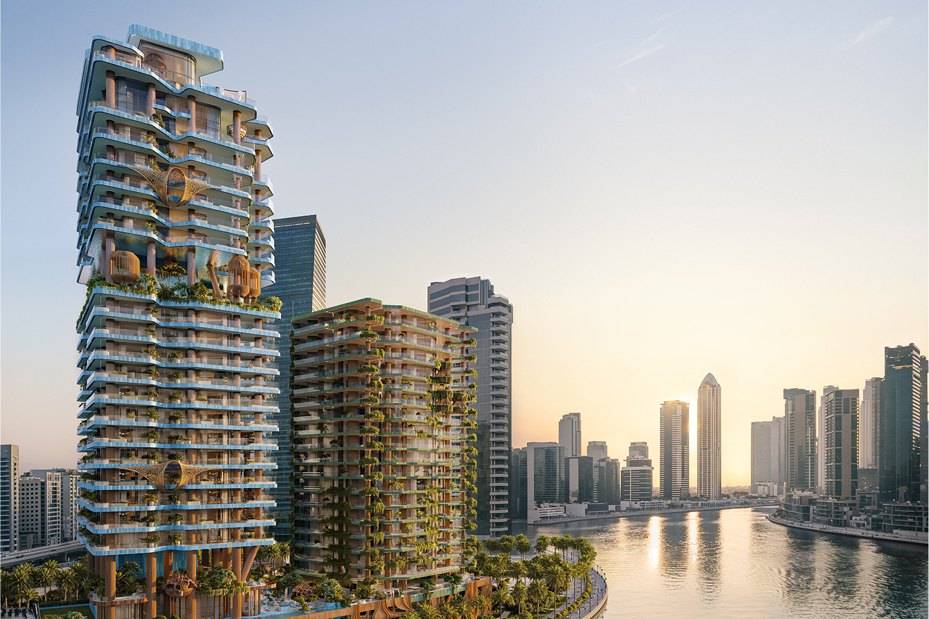 Orientation of the tower maximizes panoramic views, natural daylight, and privacy, ensuring that every residence enjoys expansive perspectives - including views toward Burj Khalifa - while simultaneously optimizing environmental performance and reinforcing a cohesive architectural narrative that merges wild organic forms with refined modern living.