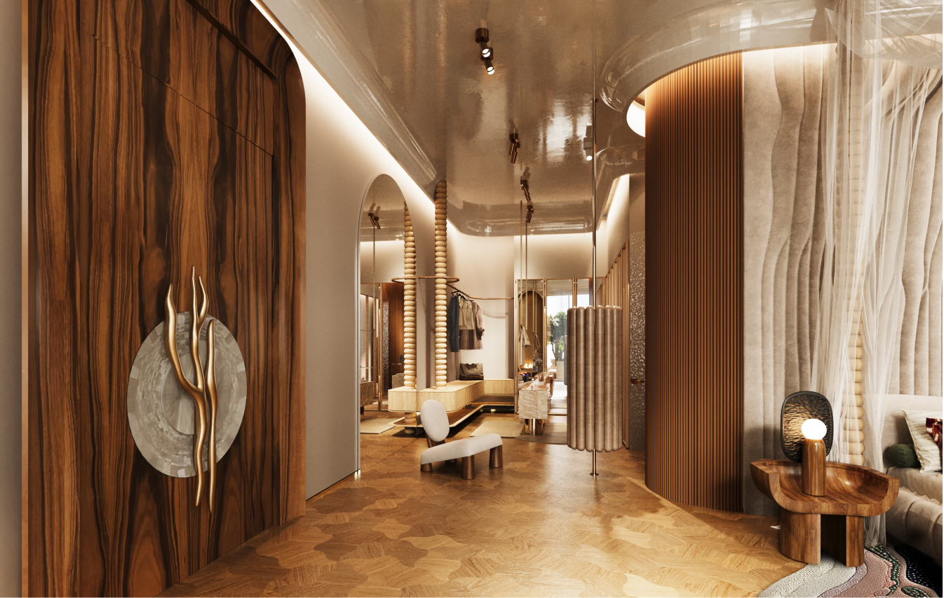 Eywa is a luxury residential building based in Dubai, UAE that aims to redefine current way of urban lifestyle. By relocating focus from minimalistic and angular perfection to natural forms, shapes and textures, the building connects to people on an instinctual level, creating a calming and grounding environment rooted in a lifestyle of wellness and comfort. Inspired by coral reefs and mangrove forests of the UAE, Eywa too is a living organism, a biophilic building that interacts with its guests on all levels. Every detail is designed to offer an immersive sensory experience, from visually pleasing surfaces to signature aromas. The interior is characterized by wavy, organic forms, layered textures and natural, luxurious materials, drawing on the main theme of the building - The Way of Water.