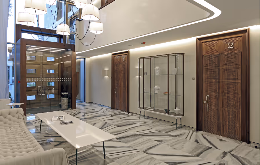 The office interior of real estate developer Hanner is rooted in the activity-based concept. At its core, this is an open plan office without fixed workplaces, allowing employees to start every morning at a different desk. Wood and ascetic yet warm aesthetics dominate the interior. The layout is developed in a way that encourages communication and exchanging ideas. The interior expresses the characteristics of the team – dedicated, creative and full of ideas.