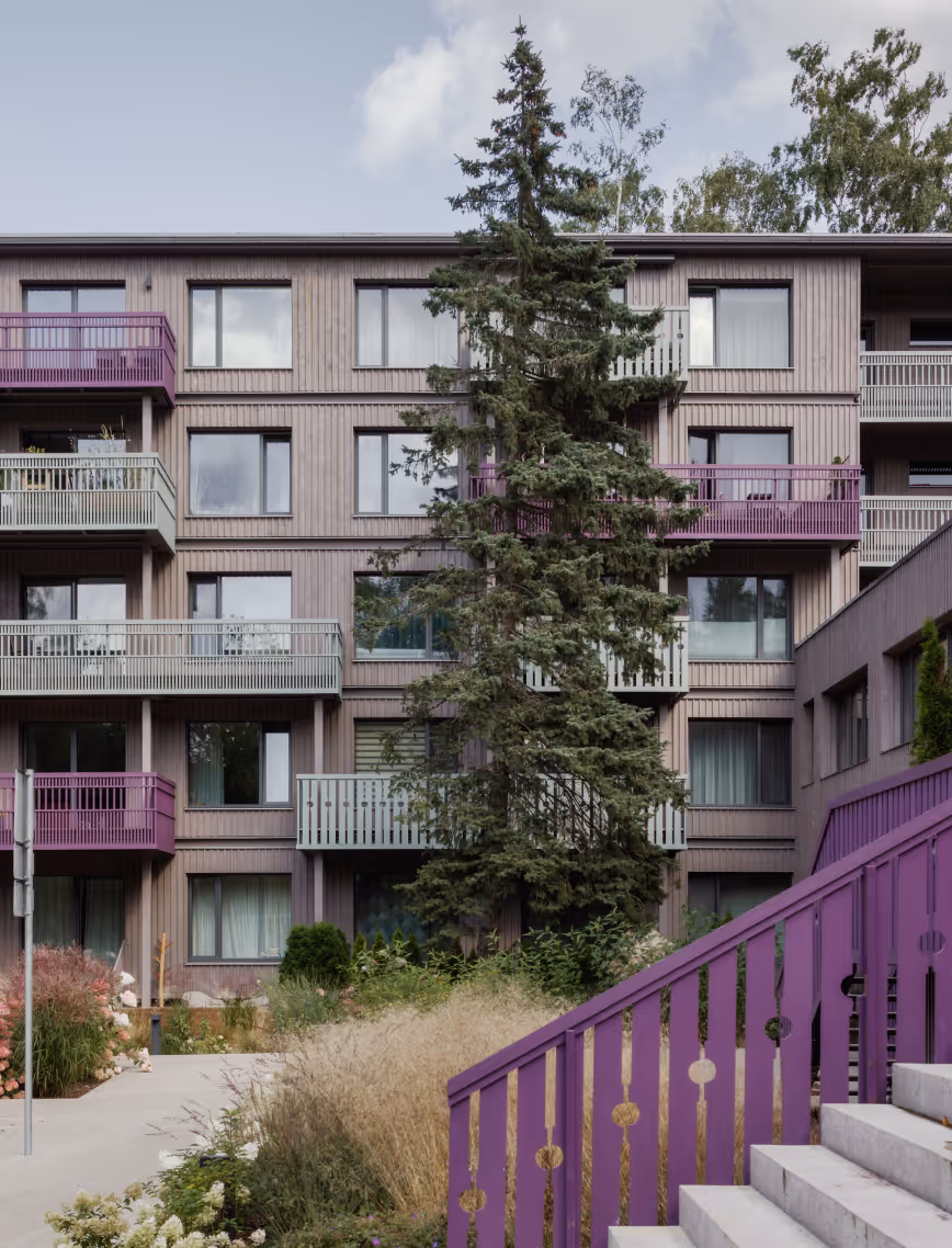This residential building is located in a historically rich district of Riga. Designed with families in mind, the complex includes a shared playground and offers a thoughtful, community-oriented living environment.